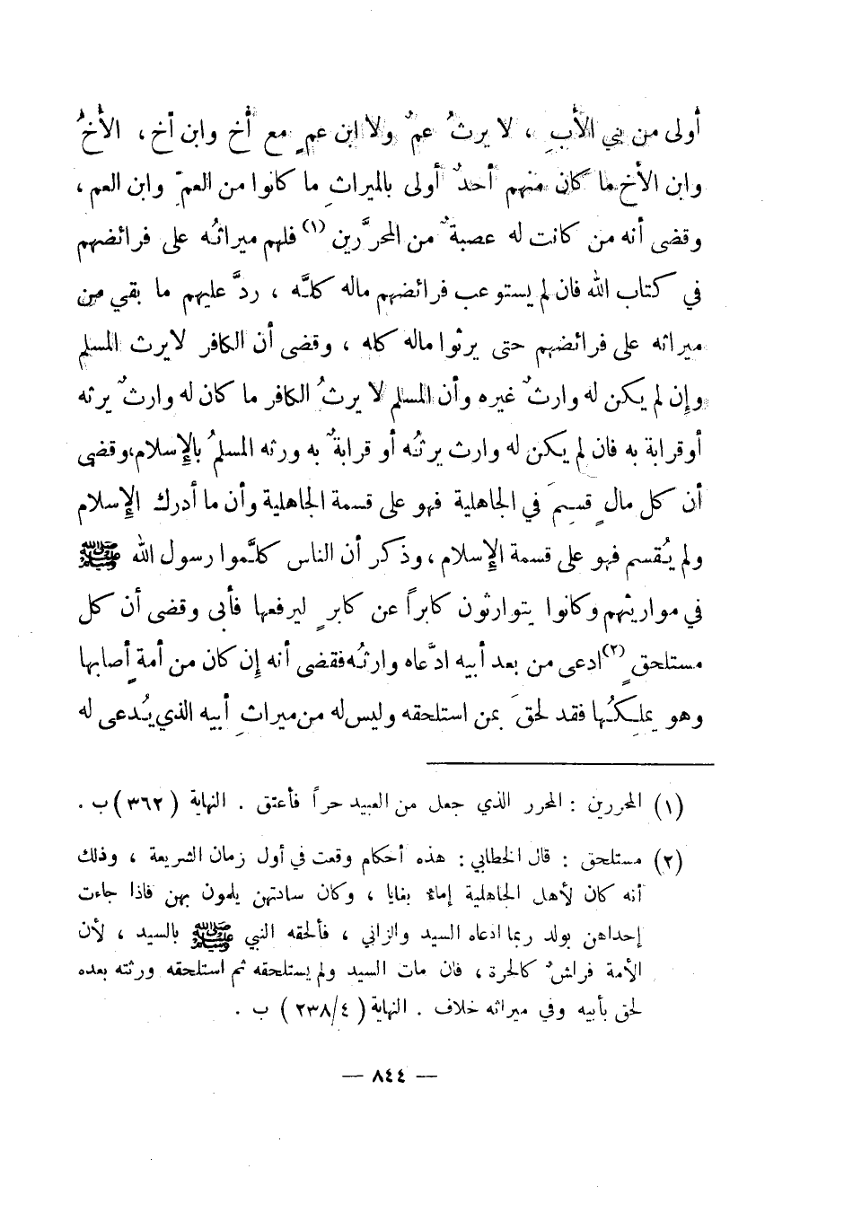 وقضى أن كل مال قسم في الجاهلية فهو على قسمة الجاهلية وأن ما أدرك الإسلام ولم يقسم فهو على قسمة الإسلام، وذكر أن الناس كلموا رسول الله صلى الله عليه وسلم في مواريثهم وكانوا يتوارثون كابرا عن كابر ليرفعها فأبى وقضى أن كل مستلحق2 ادعى من بعد أبيه ادعاه وارثه فقضى أنه إن كان من أمة أصابها وهو يملكها فقد لحق بمن استلحقه وليس له من ميراث أبيه الذي يدعى له من
