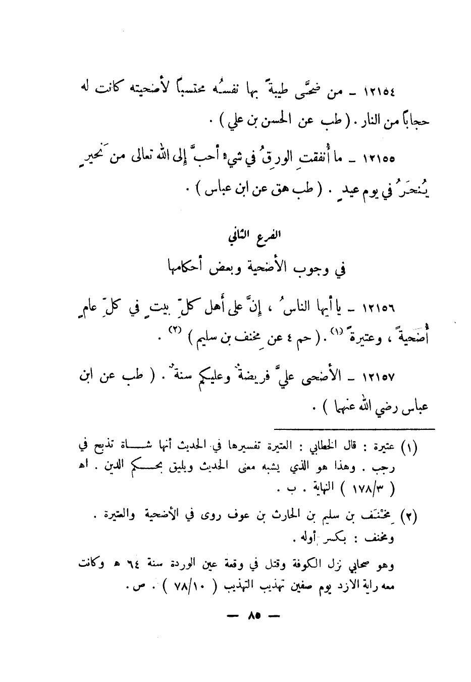 12154- من ضحى طيبة بها نفسه محتسبا لأضحيته كانت له حجابا من النار. "طب عن الحسن بن علي".