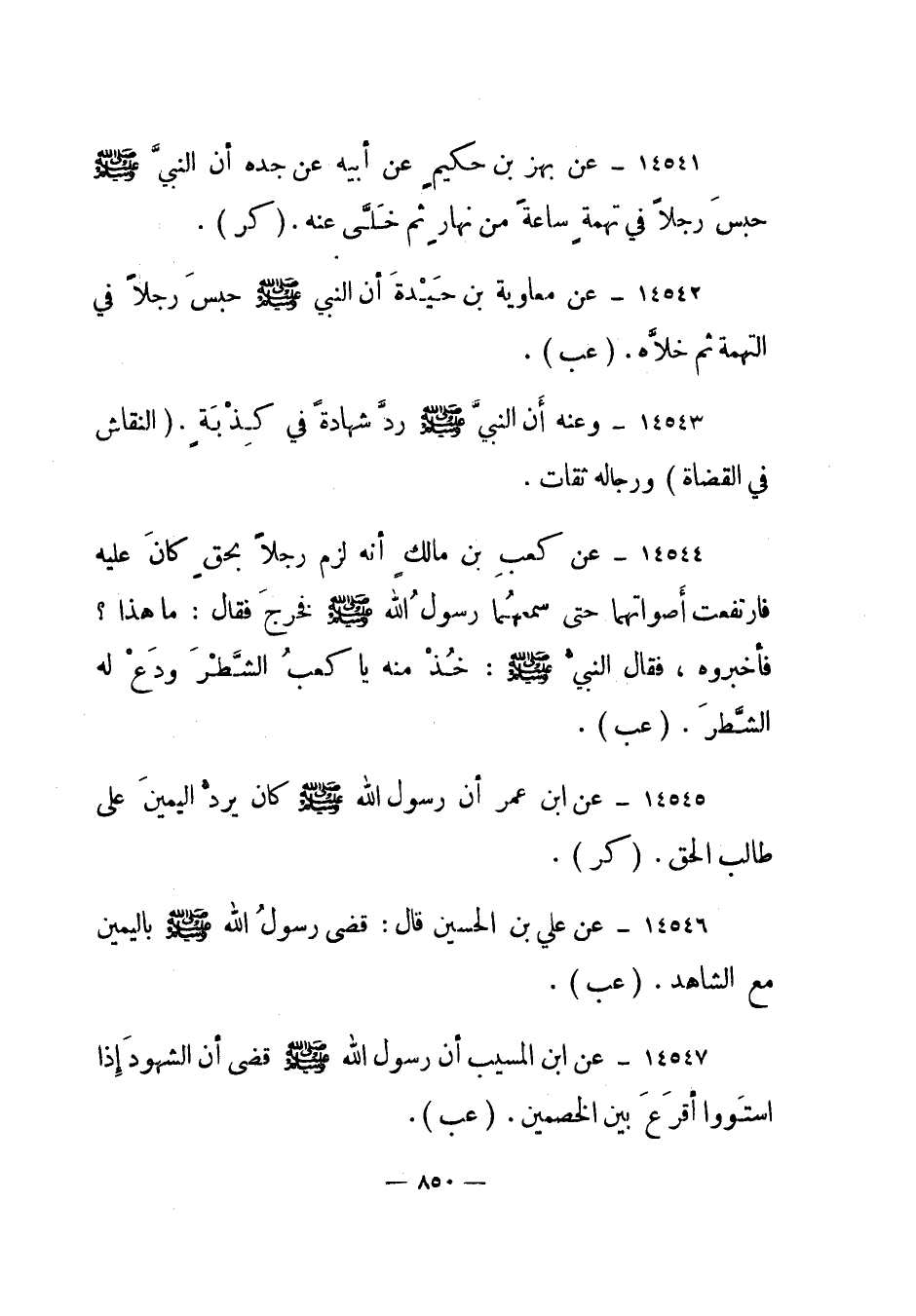 14542- عن معاوية بن حيدة أن النبي صلى الله عليه وسلم حبس رجلا في التهمة ثم خلاه." عب".