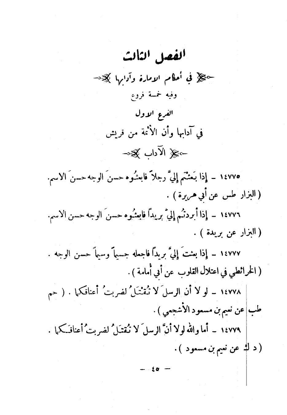 الفصل الثالث: "في أحكام الإمارة وآدابها"