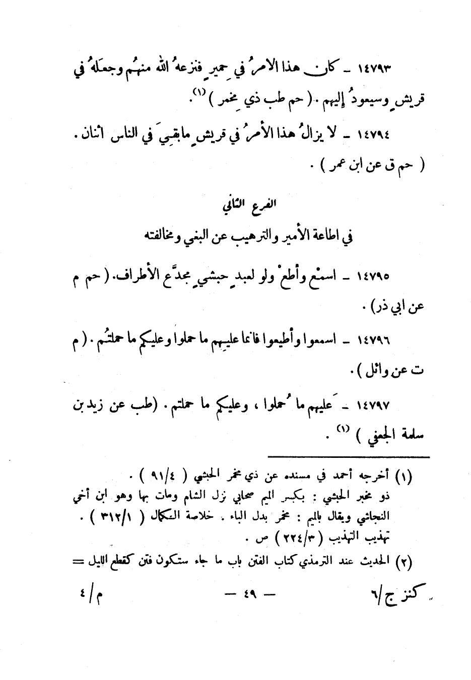 14795- "اسمع وأطع ولو لعبد حبشي مجدع الأطراف". "حم م عن أبي ذر".