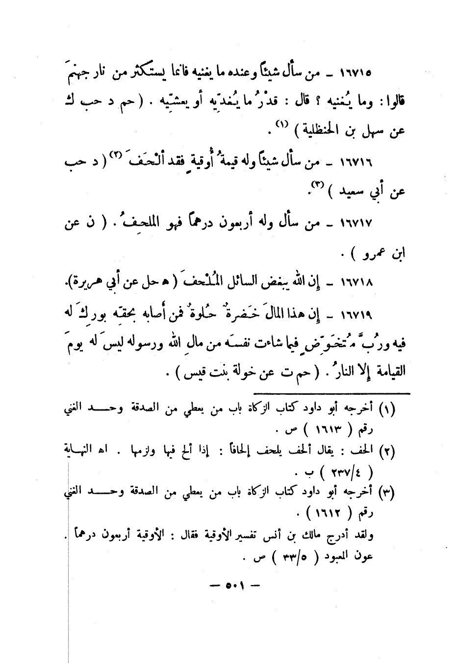 16716- "من سأل شيئا وله قيمة أوقية فقد ألحف 2 ". "د حب عن أبي سعيد" 3.