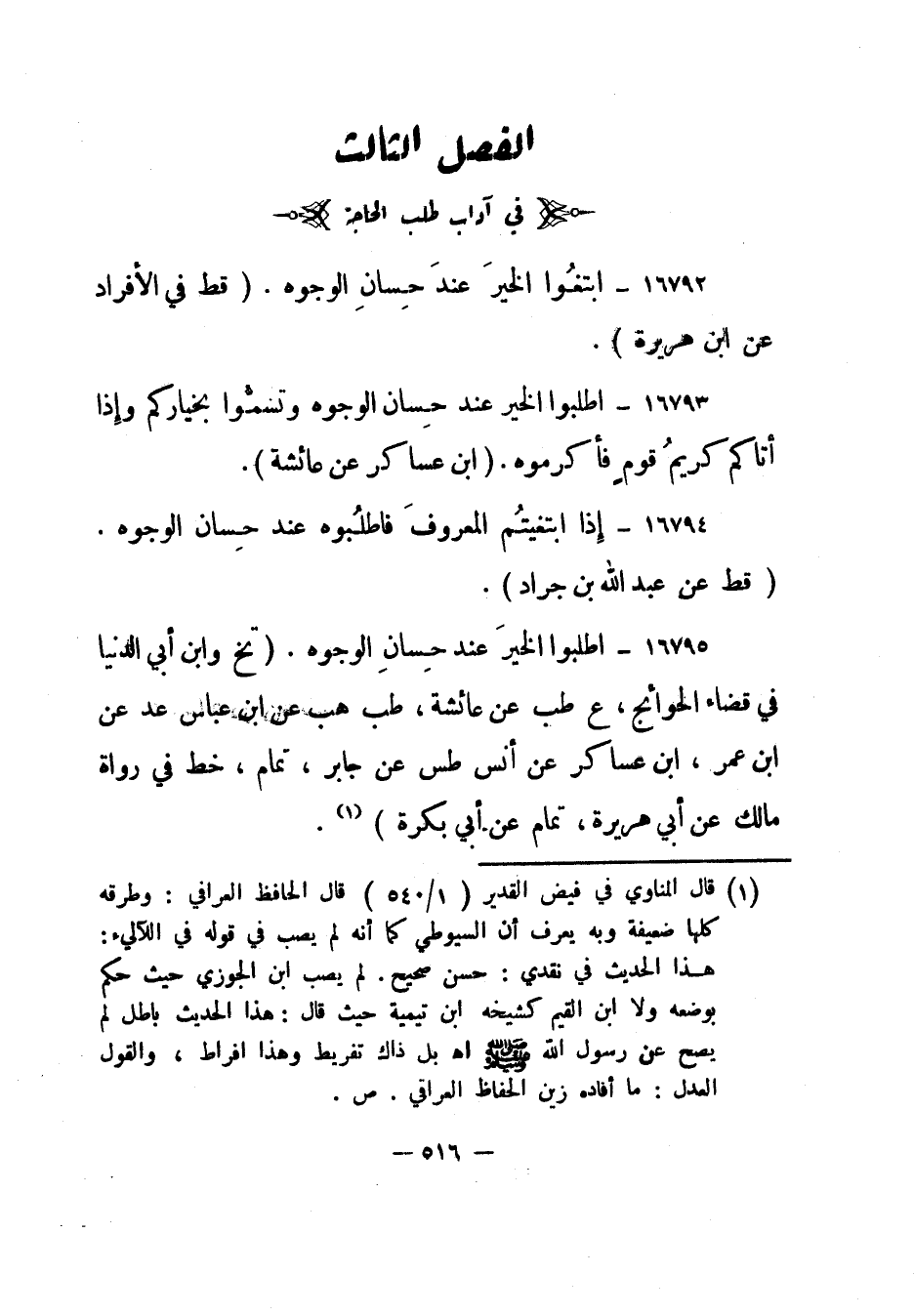 16794- "إذا ابتغيتم المعروف فاطلبوه عند حسان الوجوه". "قط عن عبد الله بن جراد".