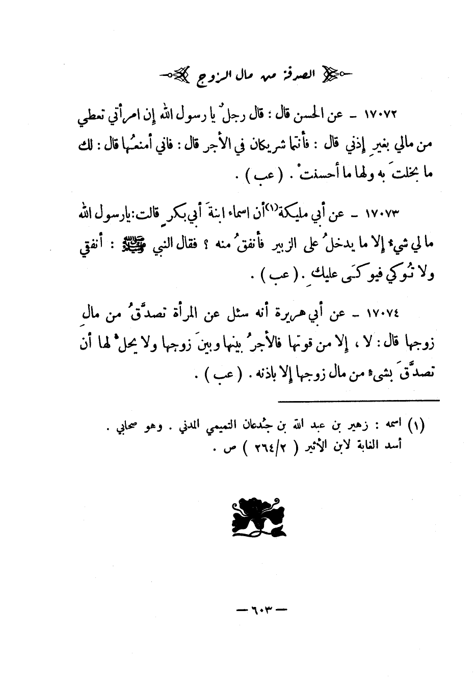 (1) اسمه: زهير بن عبد الله بن جدعان التميمي المدني. وهو صحابي. أسد الغابة لابن الأثير "2/264" ص.