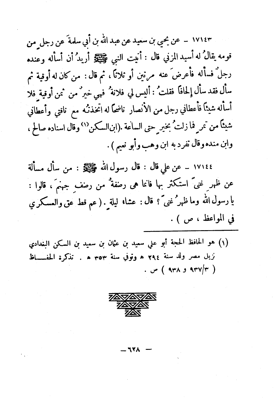 (1) هو الحافظ الحجة أبو علي سعيد بن عثمان بن سعيد بن السكن البغدادي نزيل مصر ولد سنة 294 هـ وتوفي سنة 353 هـ. تذكرة الحفاظ "3/937 و 938" ص.