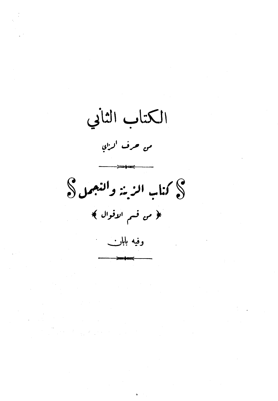 الكتاب الثاني من حرف الزاي: كتاب الزينة والتجمل "من قسم الأقوال"