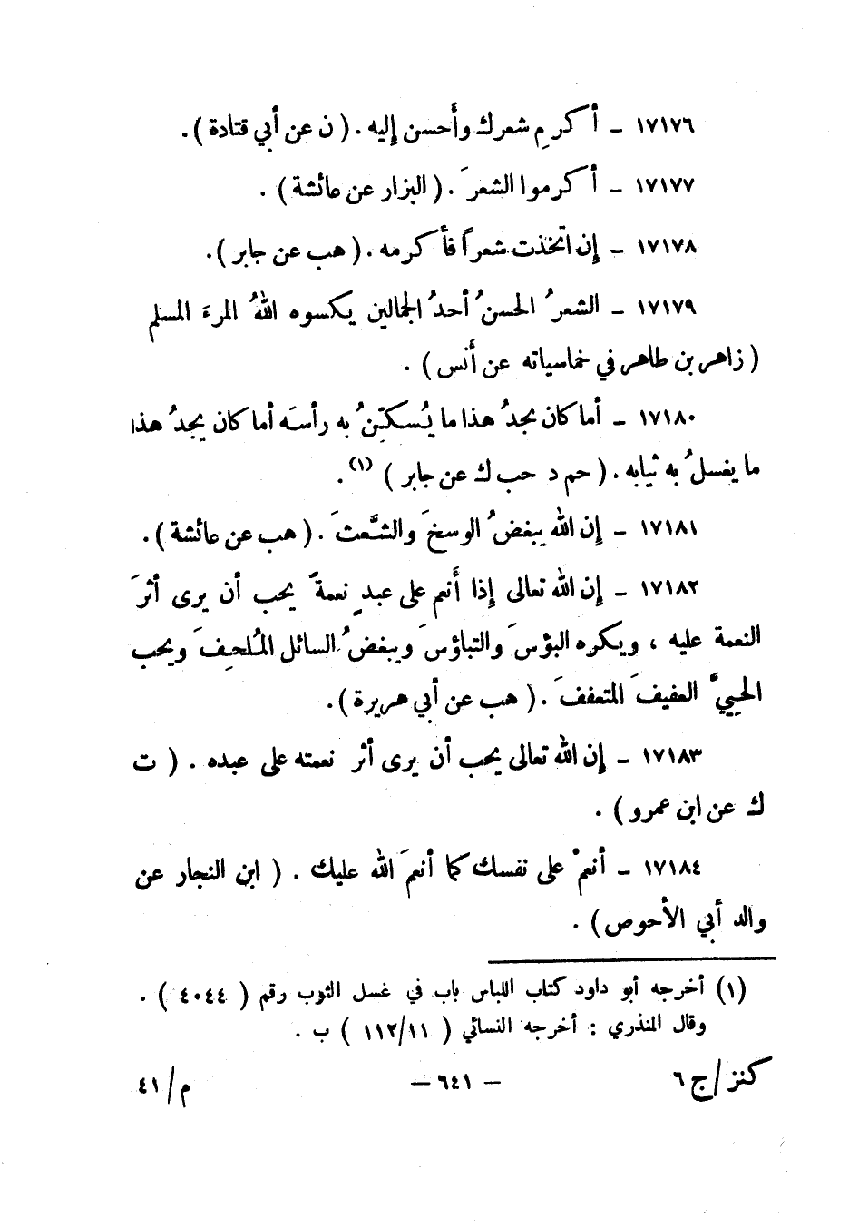 17176- "أكرم شعرك وأحسن إليه". "ن عن أبي قتادة".