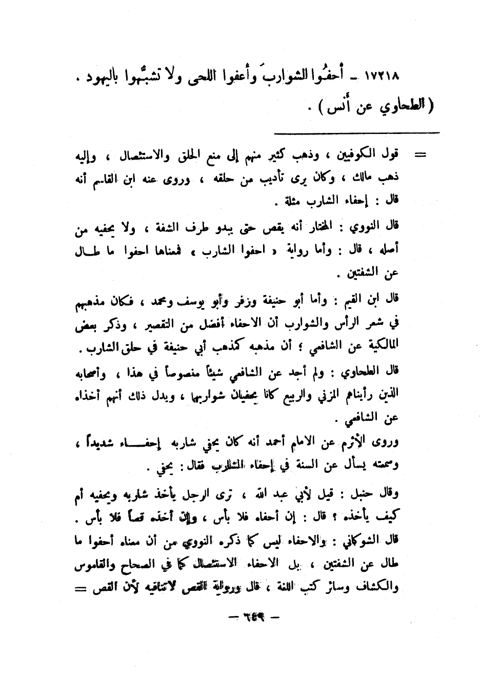 17218- "أحفوا الشوارب وأعفوا اللحى ولا تشبهوا باليهود". "الطحاوي عن أنس".