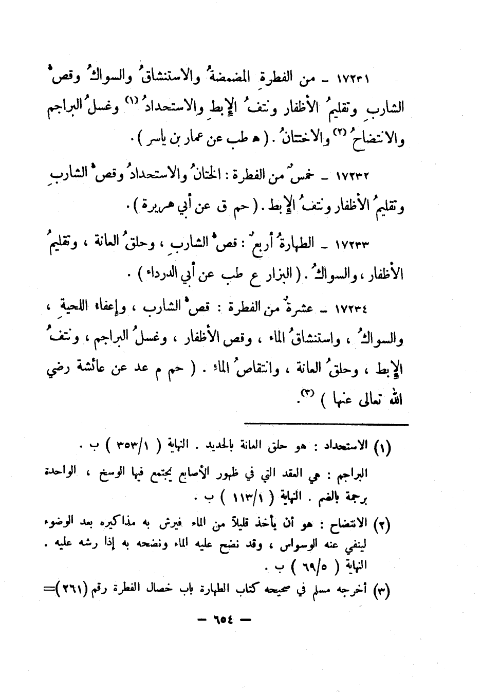 (3) أخرجه مسلم في صحيحه كتاب الطهارة باب خصال الفطرة رقم "261" =