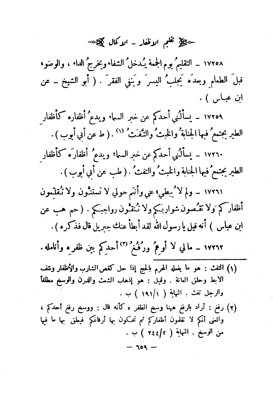 17262- "مالي لا أوهم ورفغ 2 أحدكم بين ظفره وأنامله".