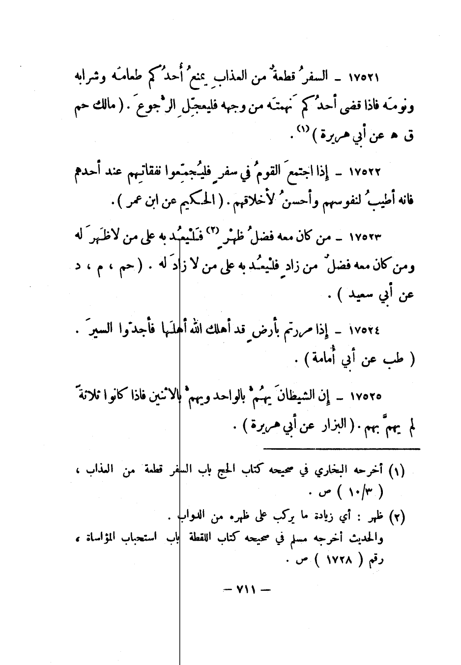 (1) أخرجه البخاري في صحيحه كتاب الحج باب السفر قطعة من العذاب، "3/10" ص.