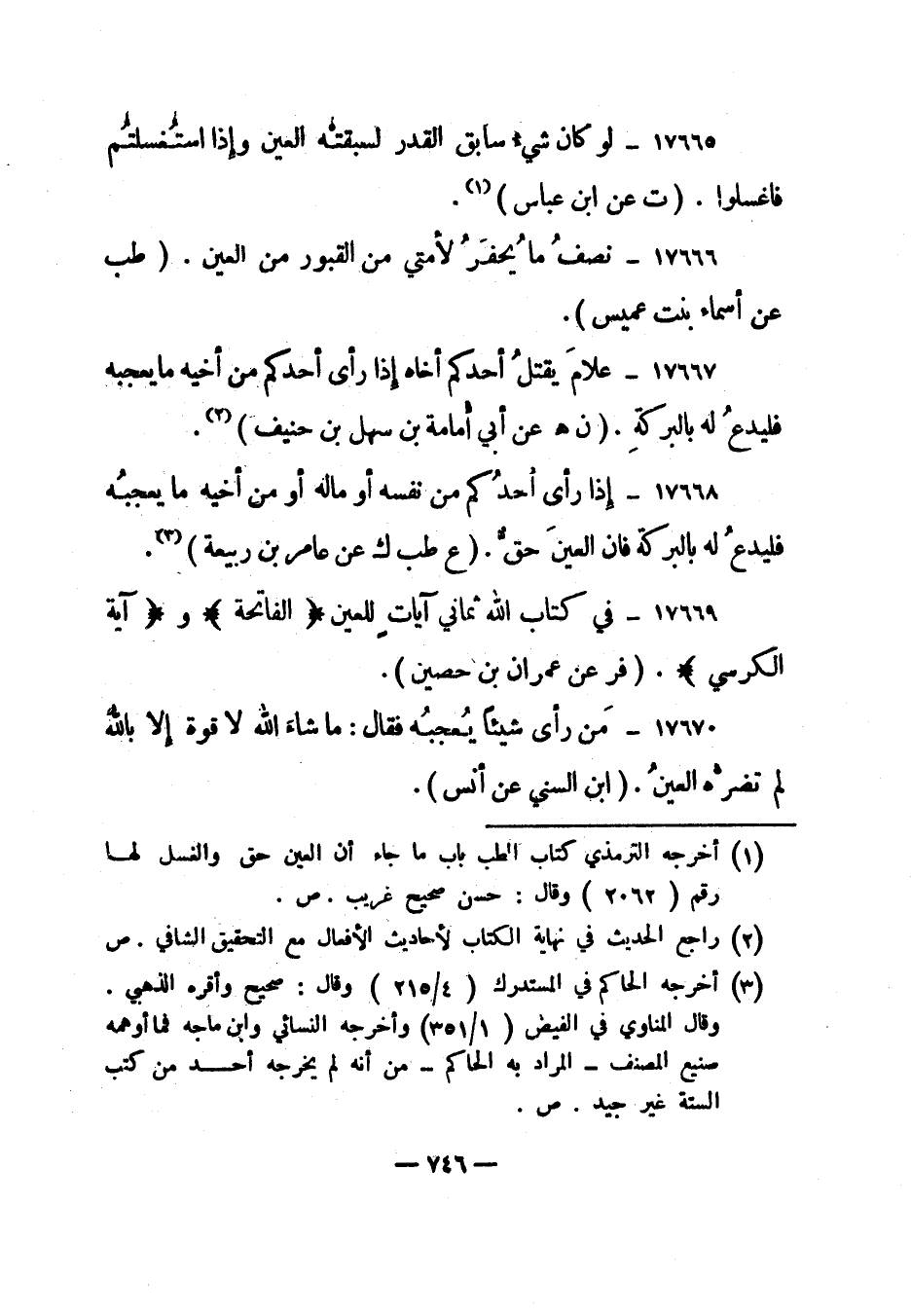17666- "نصف ما يحفر لأمتي من القبور من العين". "طب عن أسماء بنت عميس".