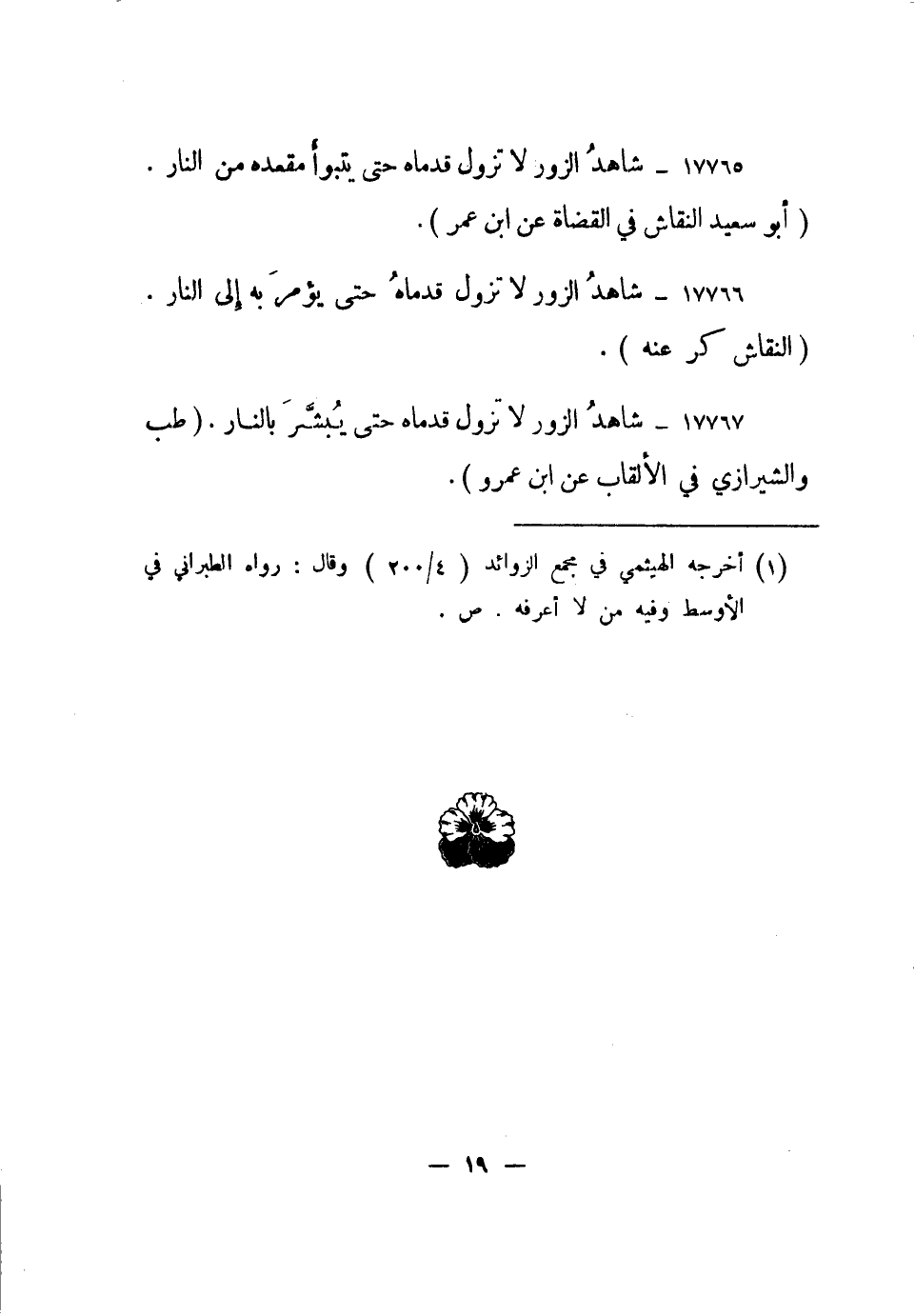 17766- "شاهد الزور لا تزول قدماه حتى يؤمر به إلى النار"."النقاش كر عنه".