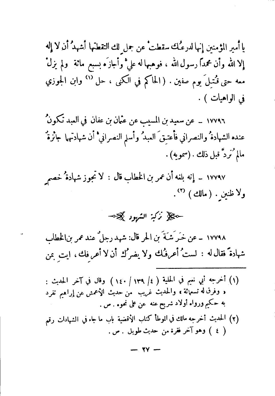 17797- إنه بلغه أن عمر بن الخطاب قال: "لا تجوز شهادة خصم ولا ظنين". "مالك"2