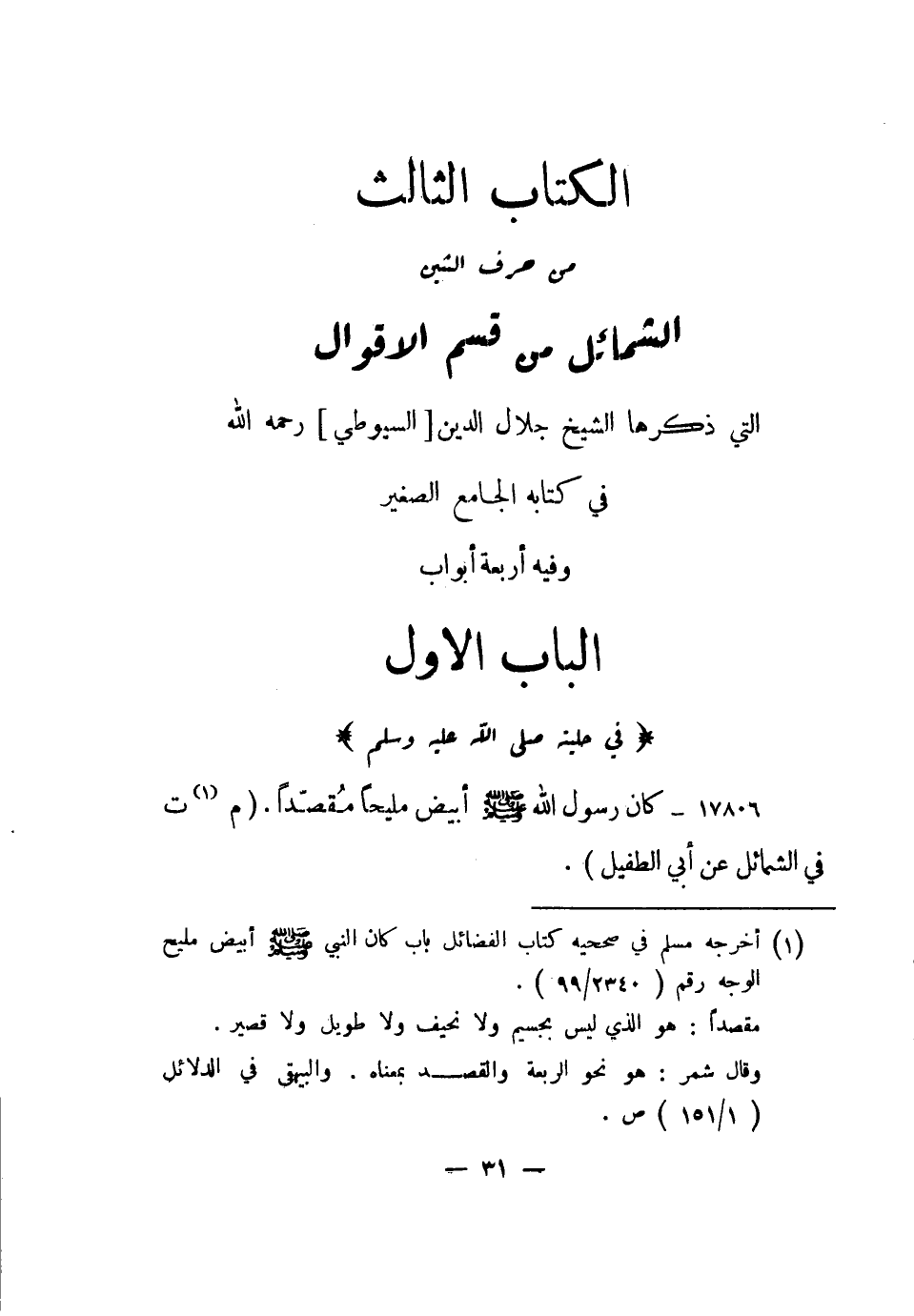 الباب الأول "في حليته صلى الله عليه وسلم"