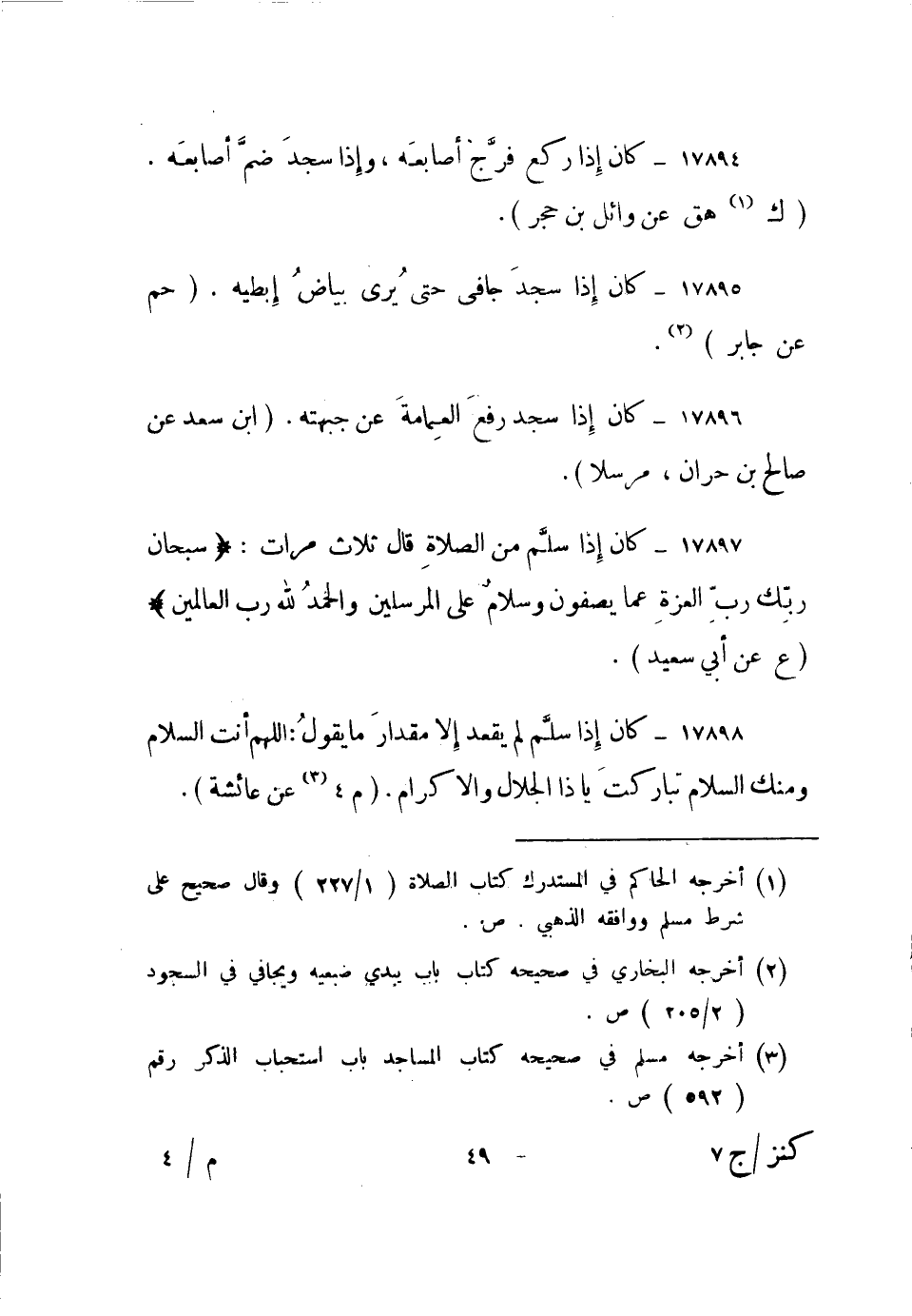 17896- "كان إذا سجد رفع العمامة عن جبهته". "ابن سعد عن صالح بن حران، مرسلا".