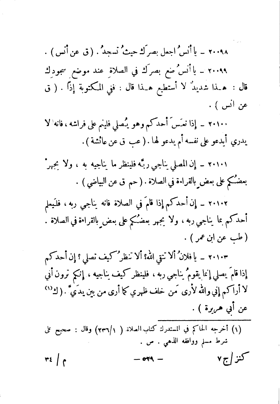 20098- يا أنس اجعل بصرك حيث تسجد. "ق عن أنس".