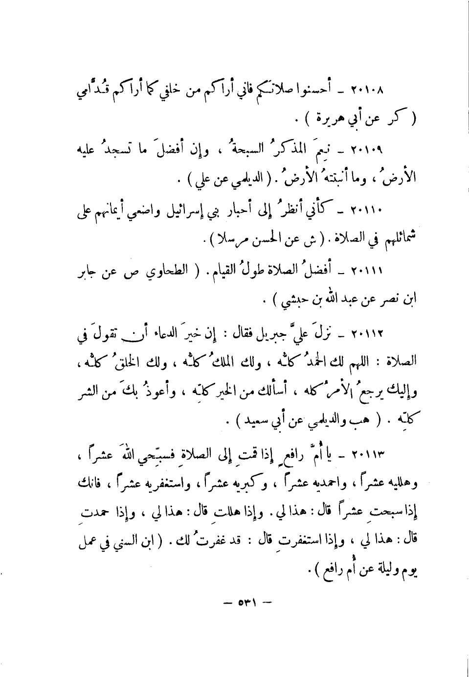 20110- كأني أنظر إلى أحبار بني إسرائيل واضعي أيمانهم على شمائلهم في الصلاة. "ش عن الحسن مرسلا".