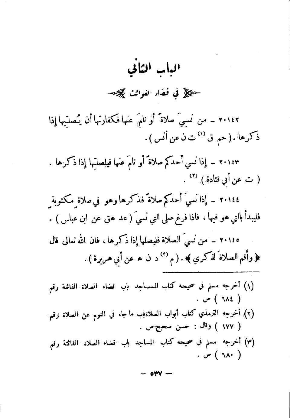 3 أخرجه مسلم في صحيحه كتاب المساجد باب قضاء الصلاة الفائتة رقم "680" ص