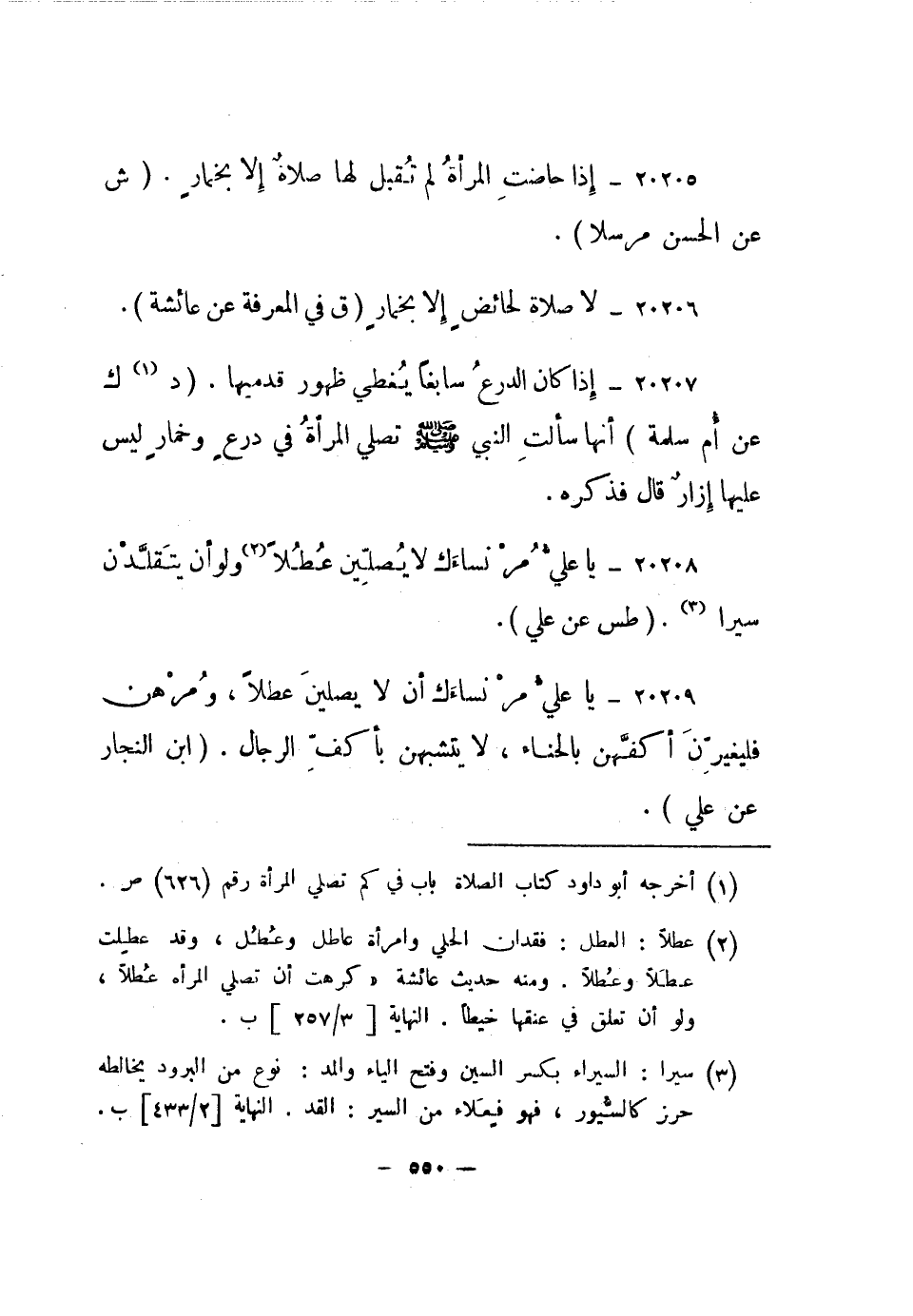 20208- يا علي مر نساءك لا يصلين عطلا2 ولو أن يتقلدن سيرا "سيرا: السيراء بكسر السين وفتح الياء والمد: نوع من البرود يخالطه حرز كالسيور، فهو فعلاء من السير: القد. النهاية [2/433] ب". "طس عن علي".