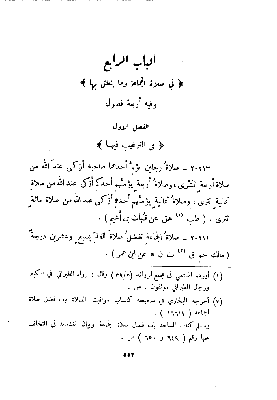 الباب الرابع "في صلاة الجماعة وما يتعلق بها" وفيه أربعة فصول