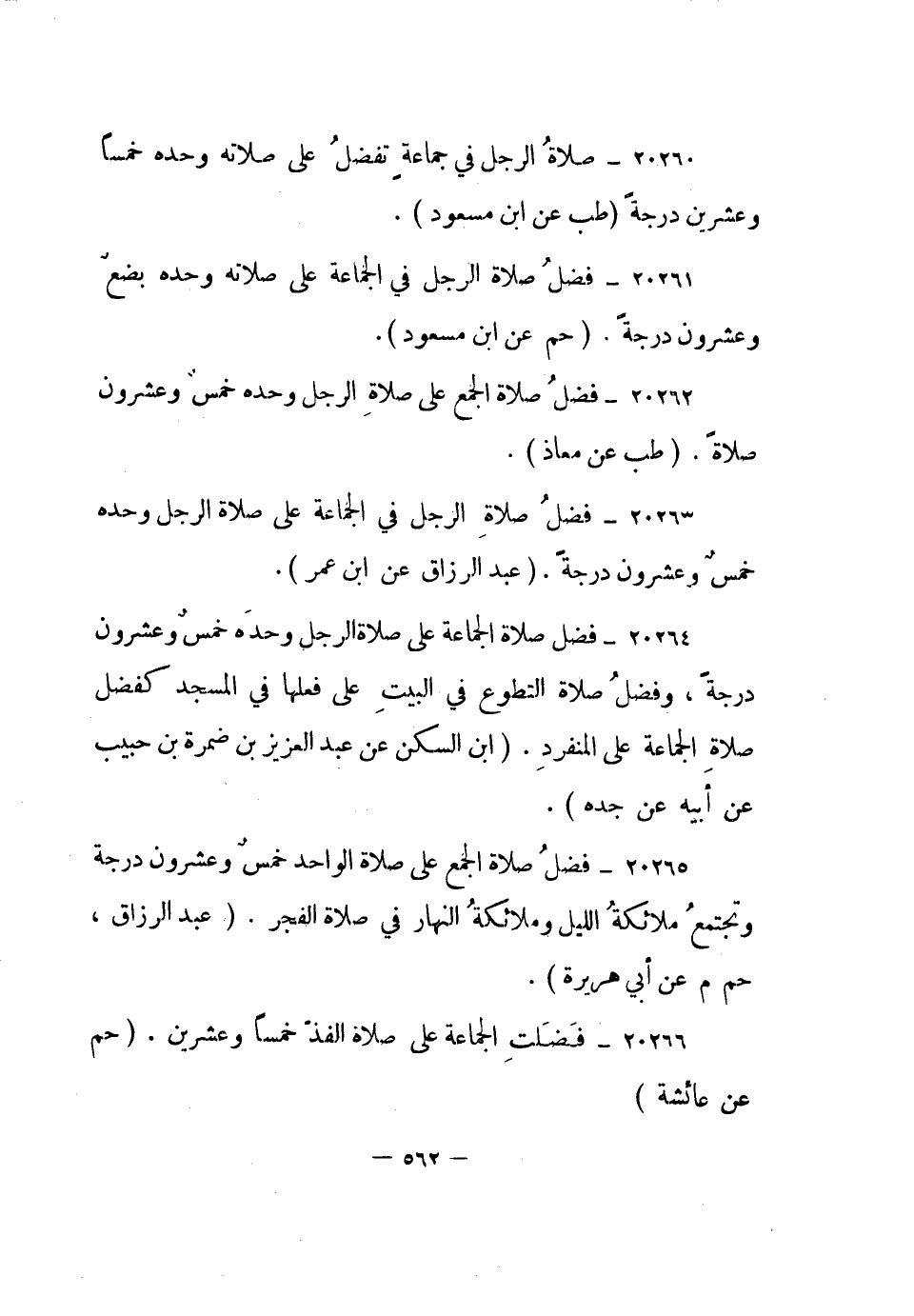 20263- فضل صلاة الرجل في الجماعة على صلاة الرجل وحده خمس وعشرون درجة. "عبد الرزاق عن ابن عمر".