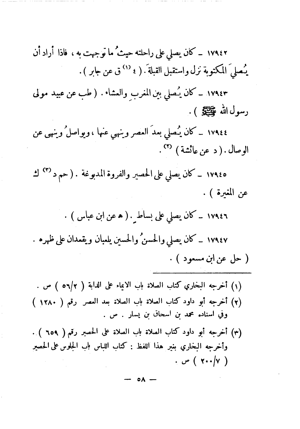 17942- كان يصلي على راحلته حيث ما توجهت به، فإذا أراد أن يصلي المكتوبة نزل واستقبل القبلة. "41 ق عن جابر".