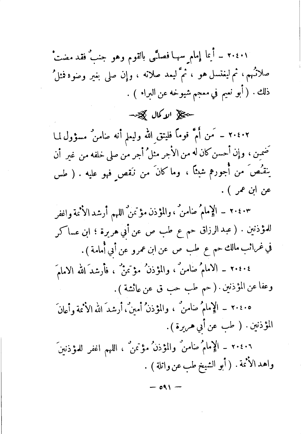 20404- الإمام ضامن، والمؤذن مؤتمن، فأرشد الله الإمام وعفا عن المؤذنين.