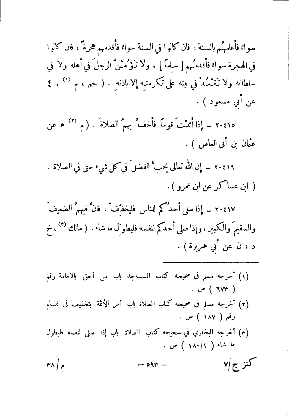 20417- إذا صلى أحدكم للناس فليخفف، فإن فيهم الضعيف والسقيم والكبير، وإذا صلى أحدكم لنفسه فليطول ما شاء. "مالك3 خ، د، ن عن أبي هريرة".