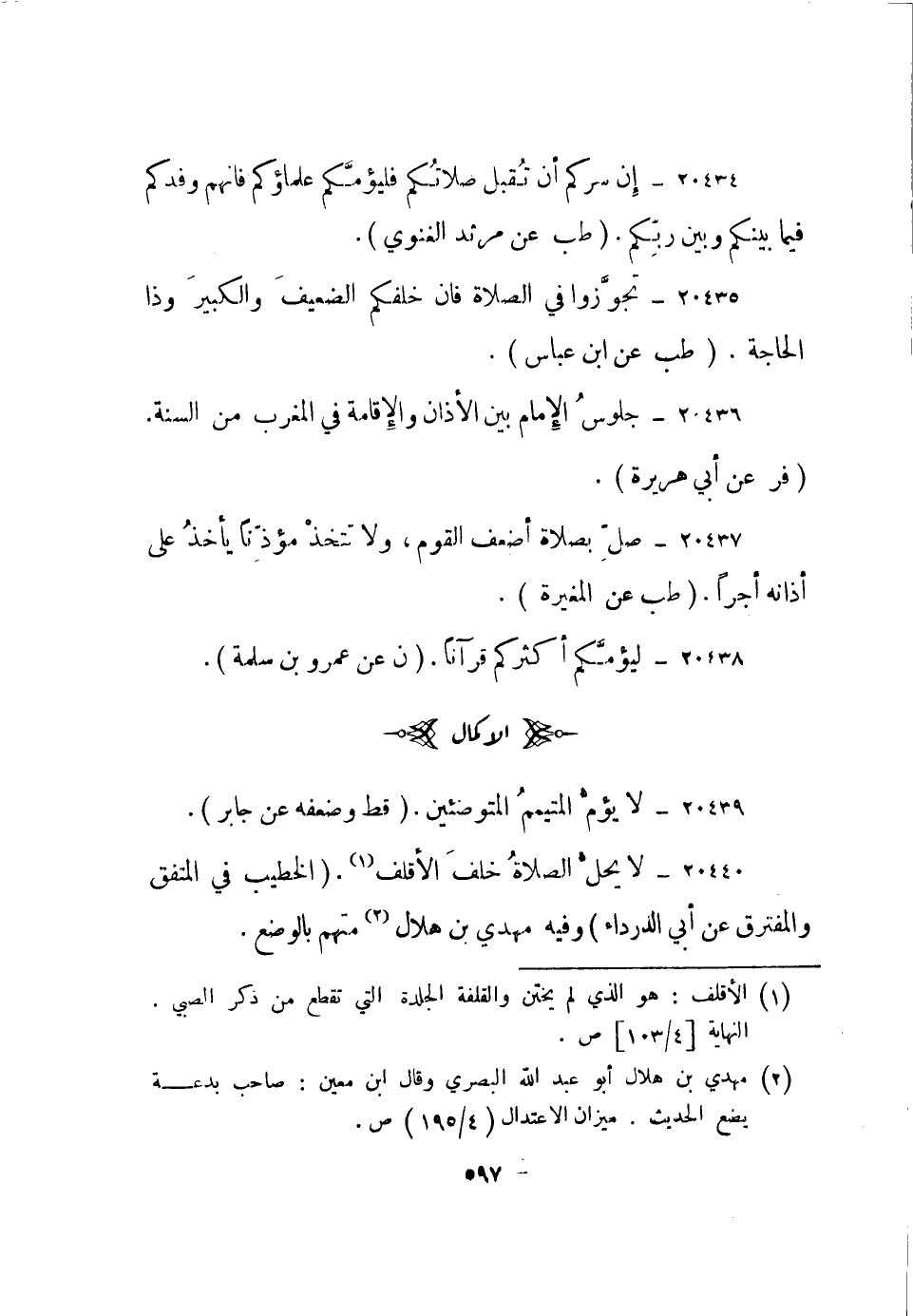 20440- لا يحل الصلاة خلف الأقلف1 "الخطيب في المتفق والمفترق عن أبي الدرداء" وفيه مهدي بن هلال2 متهم بالوضع.