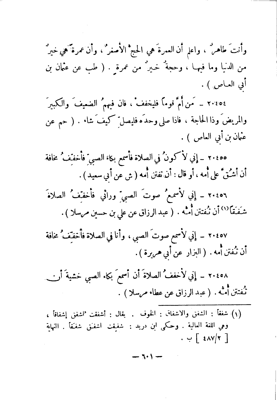 20456- إني لأسمع صوت الصبي ورائي فأخفف الصلاة شفقا1 أن تفتتن أمه.