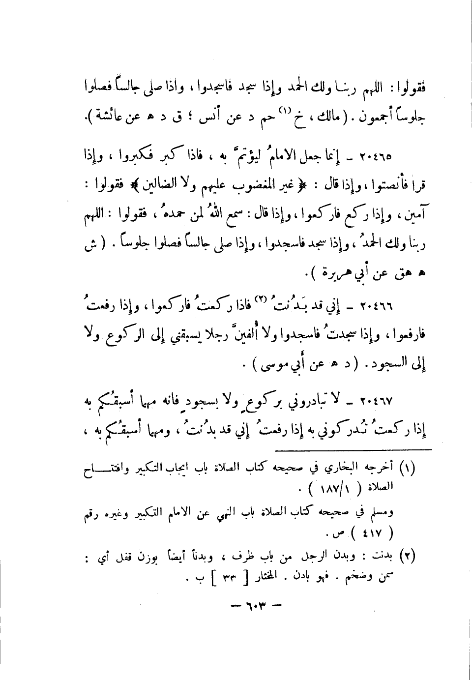 20466- إني قد بدنت2 فإذا ركعت فاركعوا، وإذا رفعت فارفعوا، وإذا سجدت فاسجدوا ولا ألفين رجلا يسبقني إلى الركوع ولا إلى السجود.