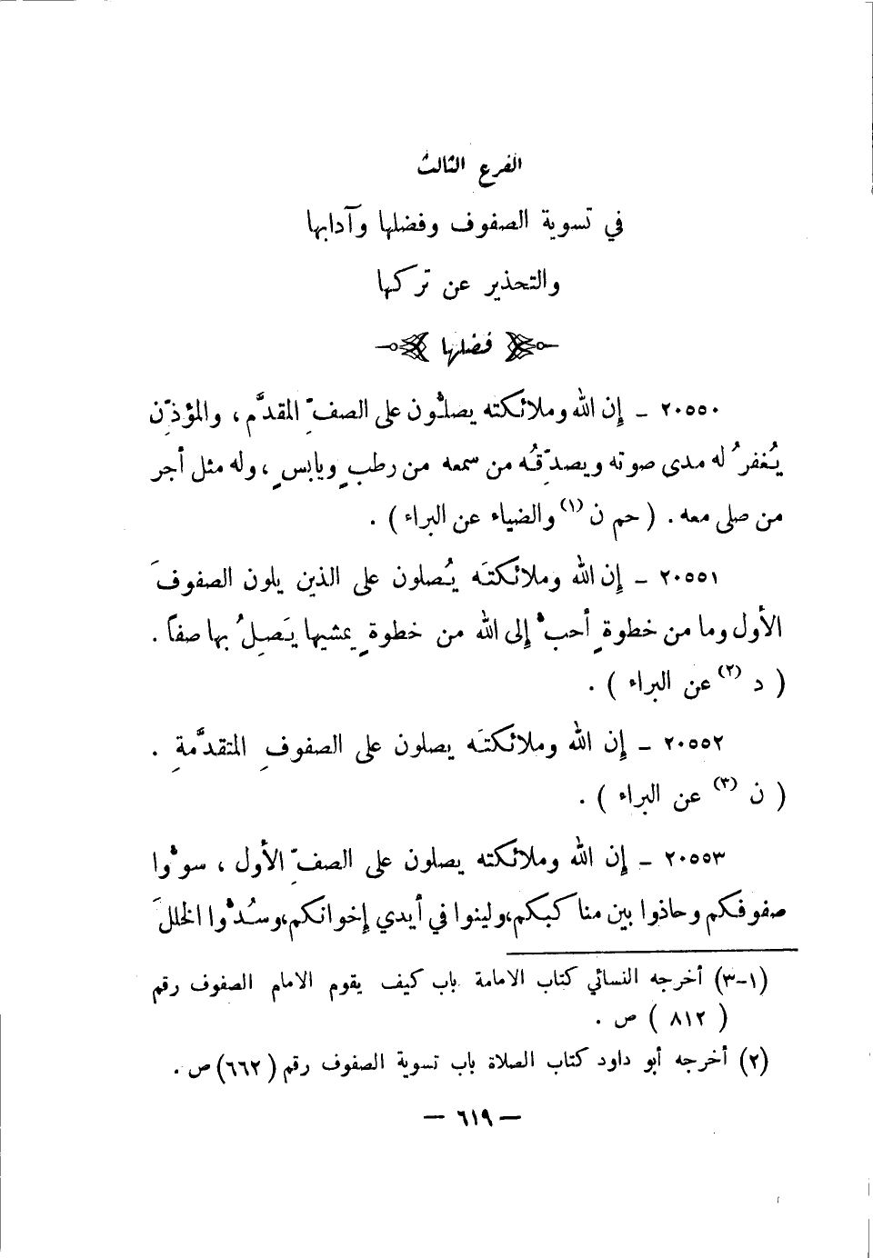 20552- إن الله وملائكته يصلون على الصفوف المتقدمة. "ن3 عن البراء".