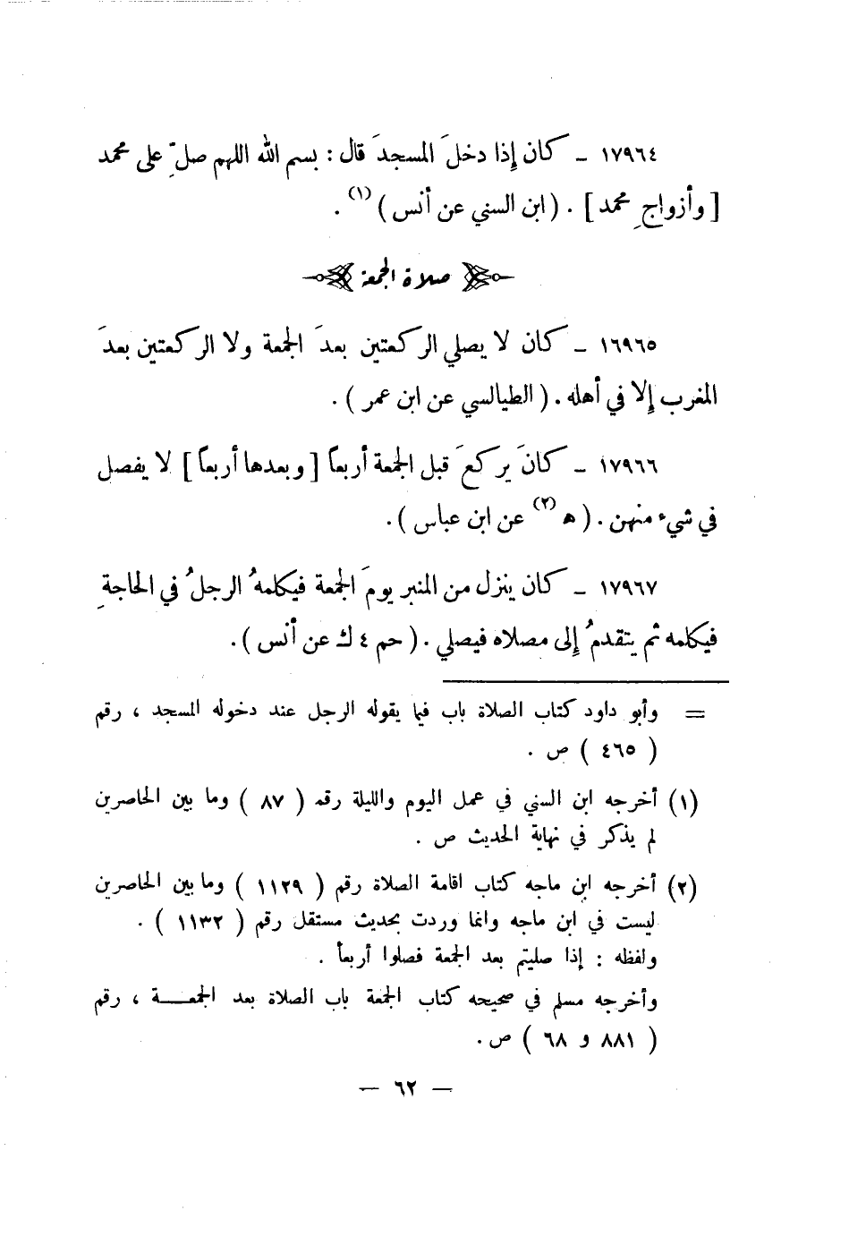 17966- كان يركع قبل الجمعة أربعا [وبعدها أربعا] لا يفصل في شيء منهن."هـ2 عن ابن عباس".