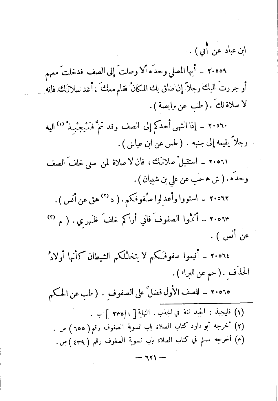 20562- استووا وأعدلوا صفوفكم. "د2 هق عن أنس".