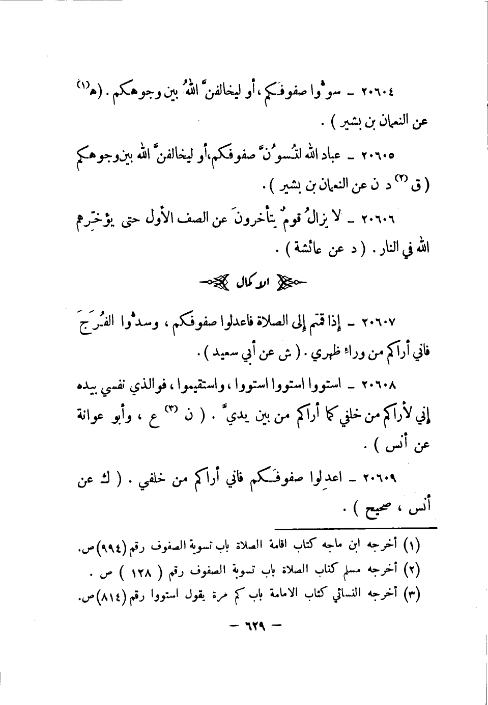 20604- سووا صفوفكم، أو ليخالفن الله بين وجوهكم. "هـ1 عن النعمان بن بشير".