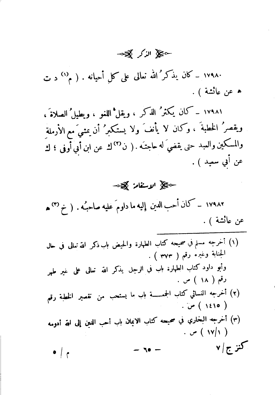 17980- كان يذكر الله تعالى على كل أحيانه. "م 1 د ت هـ عن عائشة".