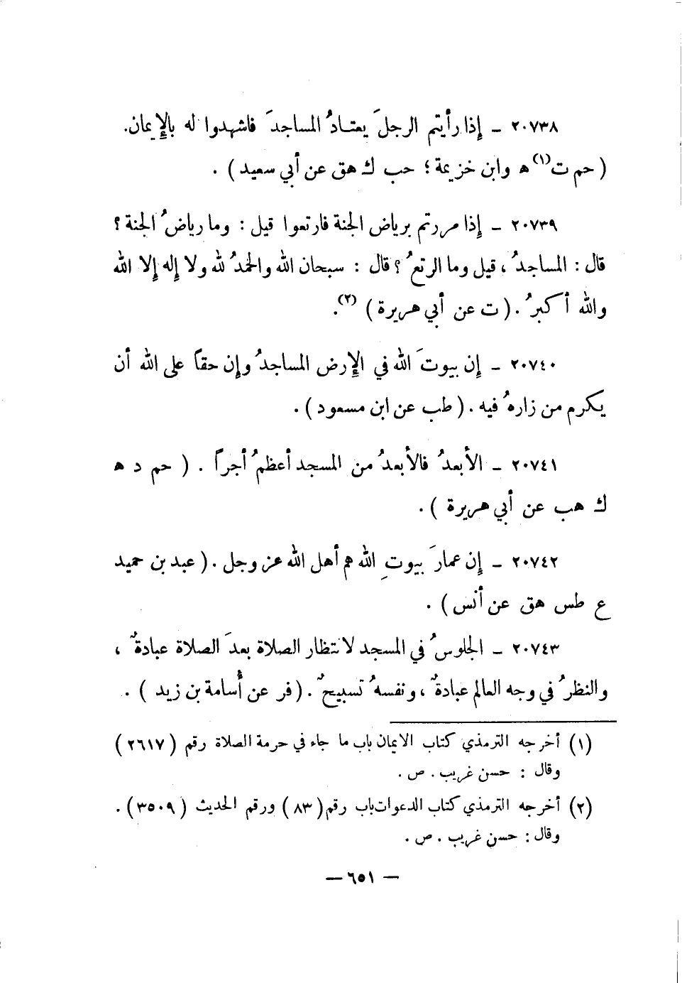 20739- إذا مررتم برياض الجنة فارتعوا قيل: وما رياض الجنة؟ قال: المساجد، قيل وما الرتع؟ قال: سبحان الله والحمد لله ولا إله إلا الله والله أكبر. "ت عن أبي هريرة"2