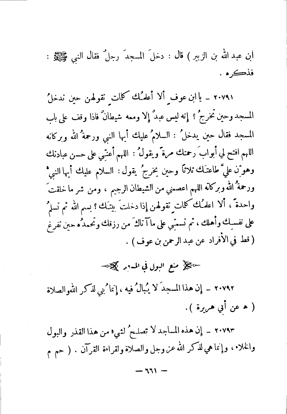 20792- إن هذا المسجد لا يبال فيه، إنما بني لذكر الله والصلاة. "هـ عن أبي هريرة".