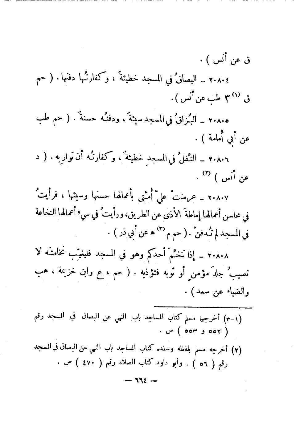 2 أخرجه مسلم بلفظه وسنده كتاب المساجد باب النهي عن البصاق في المسجد رقم "56". وأبو داود كتاب الصلاة رقم "470" ص.