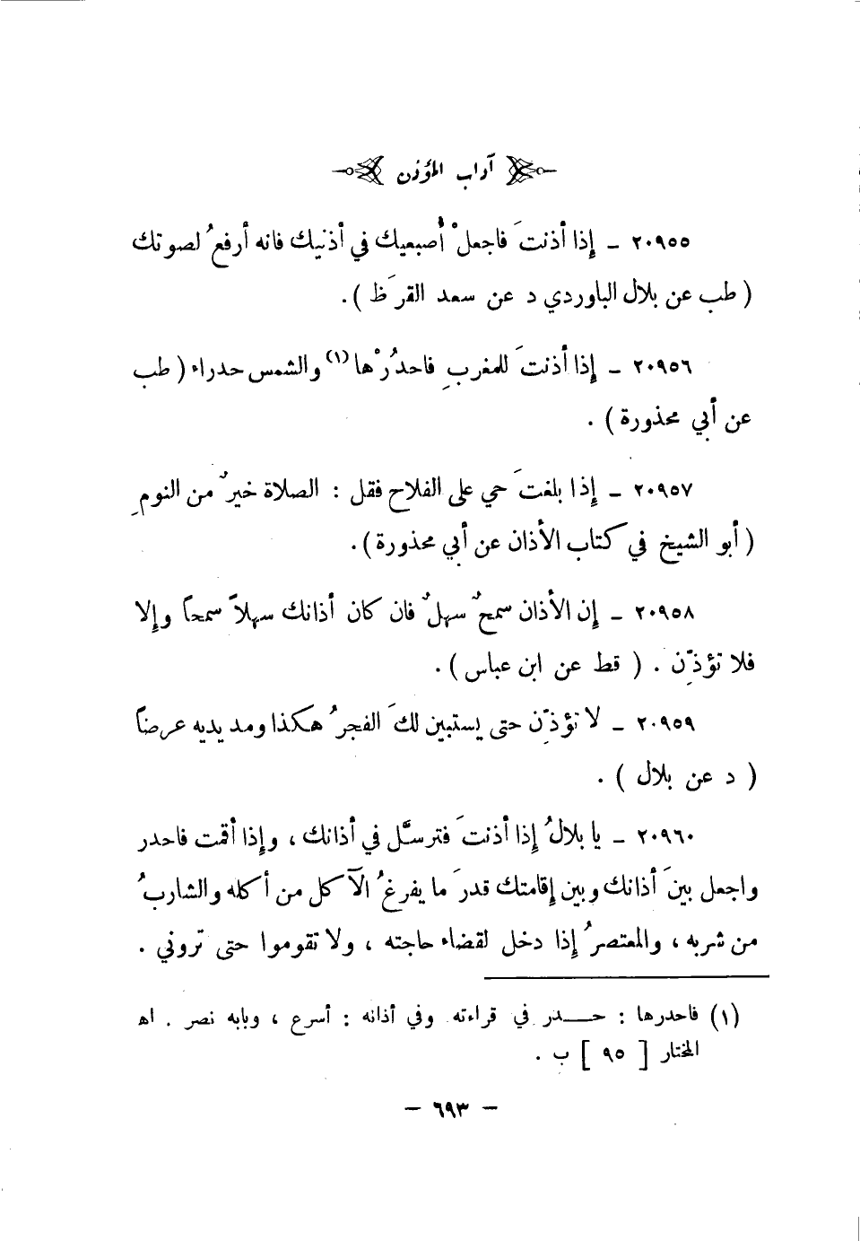 20958- إن الأذان سمح سهل فإن كان أذانك سهلا سمحا وإلا فلا تؤذن.