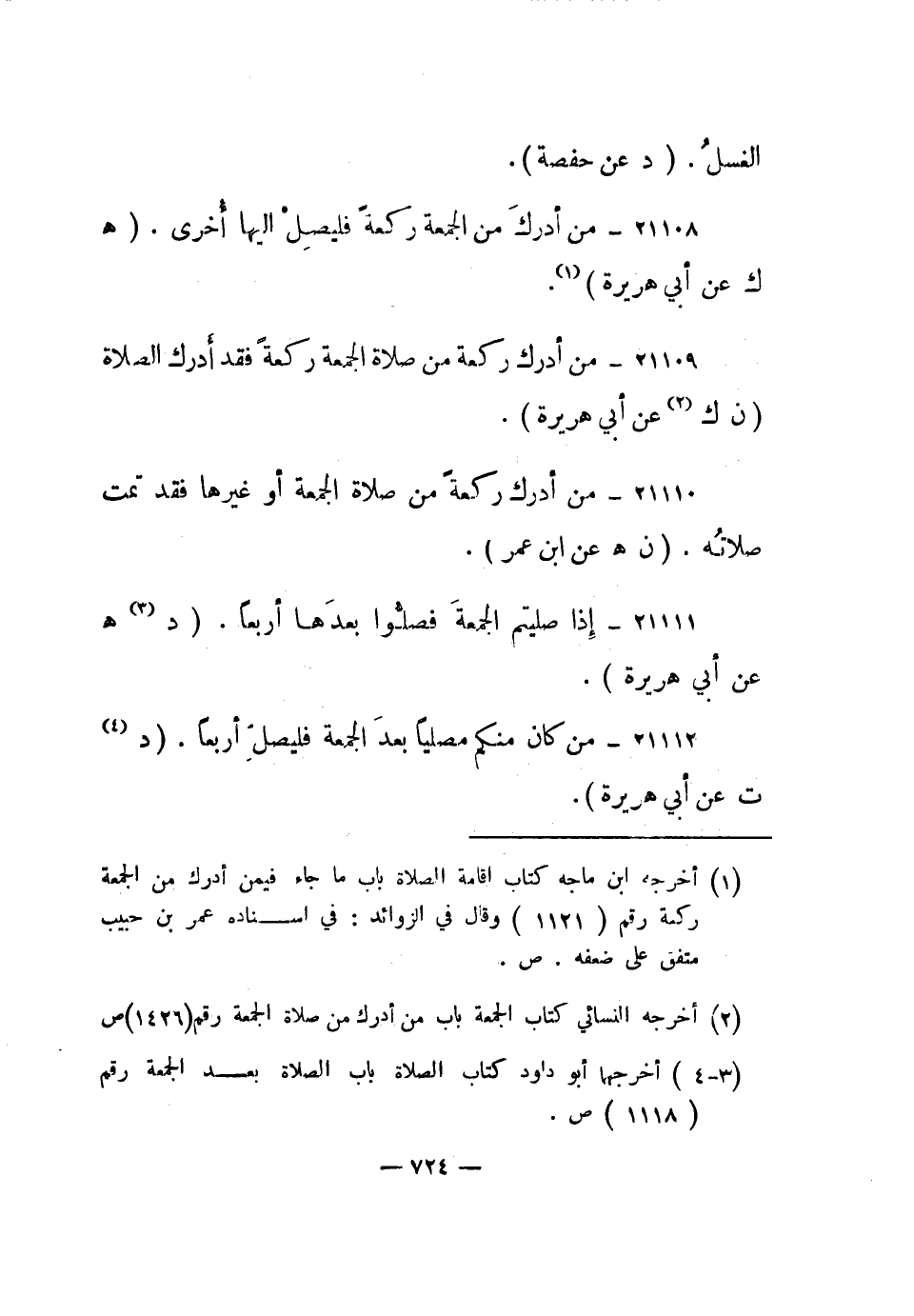 21112- من كان منكم مصليا بعد الجمعة فليصل أربعا. "د4 ت عن أبي هريرة".