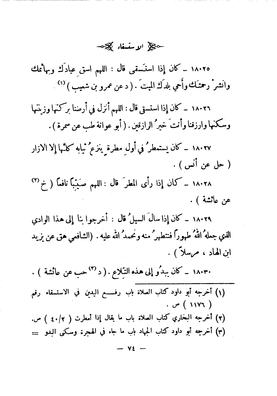 18025- كان إذا استسقى قال: اللهم اسق عبادك وبهائمك وانشر رحمتك وأحي بلدك الميت. " د عن عمرو بن شعيب"