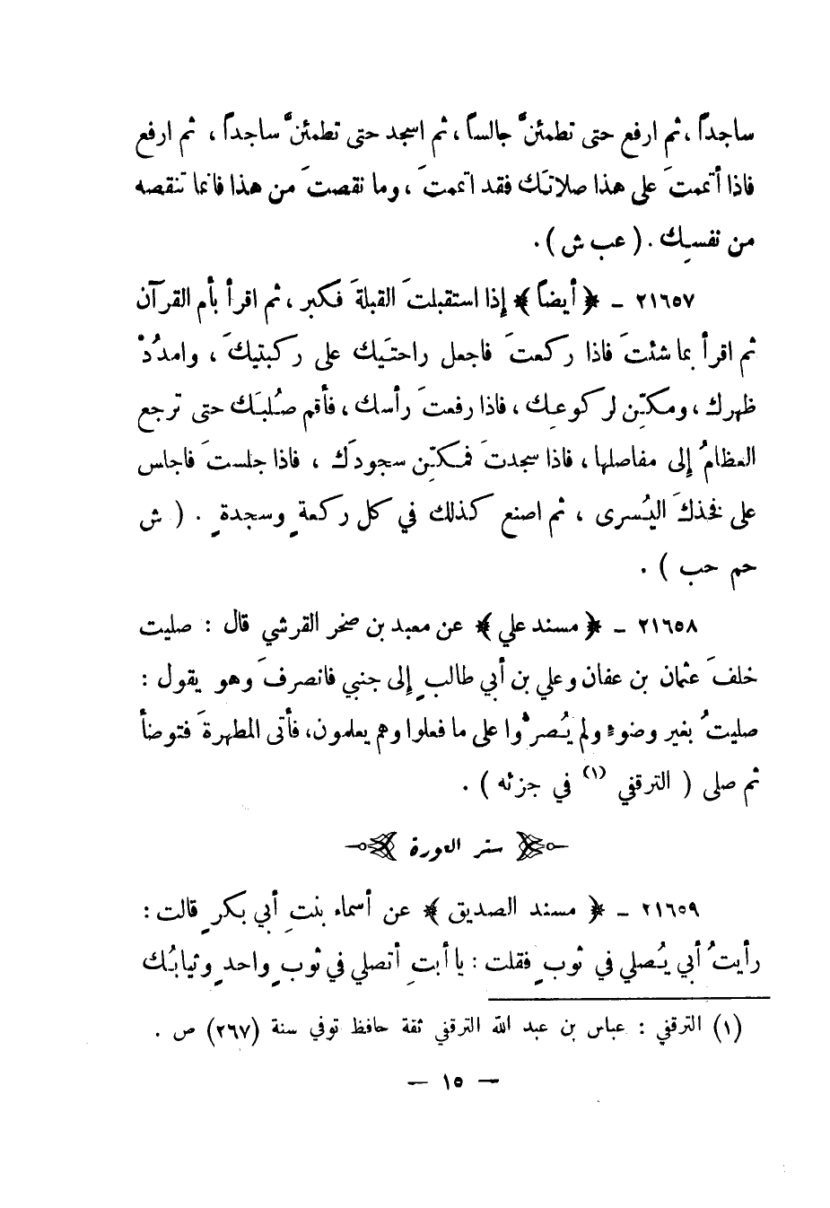 21659- "مسند الصديق" عن أسماء بنت أبي بكر قالت: "رأيت أبي يصلي في ثوب فقلت: يا أبت أتصلي في ثوب واحد وثيابك