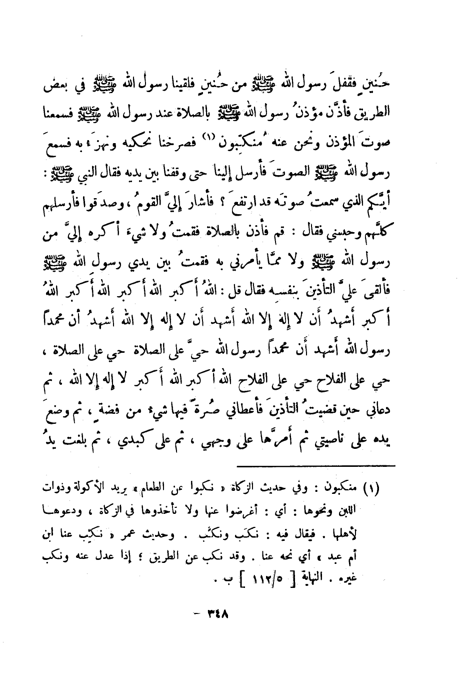 حنين فقفل رسول الله صلى الله عليه وسلم من حنين فلقينا رسول الله صلى الله عليه وسلم في بعض الطريق فأذن مؤذن رسول الله صلى الله عليه وسلم بالصلاة عند رسول الله صلى الله عليه وسلم فسمعنا صوت المؤذن ونحن عنه منكبون (1) فصرخنا نحكيه ونهزء به فسمع رسول الله صلى الله عليه وسلم الصوت فأرسل إلينا حتى وقفنا بين يديه فقال النبي صلى الله عليه وسلم: أيكم الذي سمعت صوته قد ارتفع؟ فأشار إلي القوم، وصدقوا فأرسلهم كلهم وحبسني فقال: قم فأذن بالصلاة فقمت ولا شيء أكره إلي من رسول الله صلى الله عليه وسلم ولا مما يأمرني به فقمت بين يدي رسول الله صلى الله عليه وسلم فألقى علي التأذين بنفسه فقال قل: الله أكبر الله أكبر الله أكبر الله أكبر أشهد أن لا إله إلا الله أشهد أن لا إله إلا الله أشهد أن محمدا رسول الله أشهد أن محمدا رسول الله حي على الصلاة حي على الصلاة، حي على الفلاح حي على الفلاح الله أكبر الله أكبر لا إله إلا الله، ثم دعاني حين قضيت التأذين فأعطاني صرة فيها شيء من فضة، ثم وضع يده على ناصيتي ثم أمرها على وجهي، ثم على كبدي، ثم بلغت يد