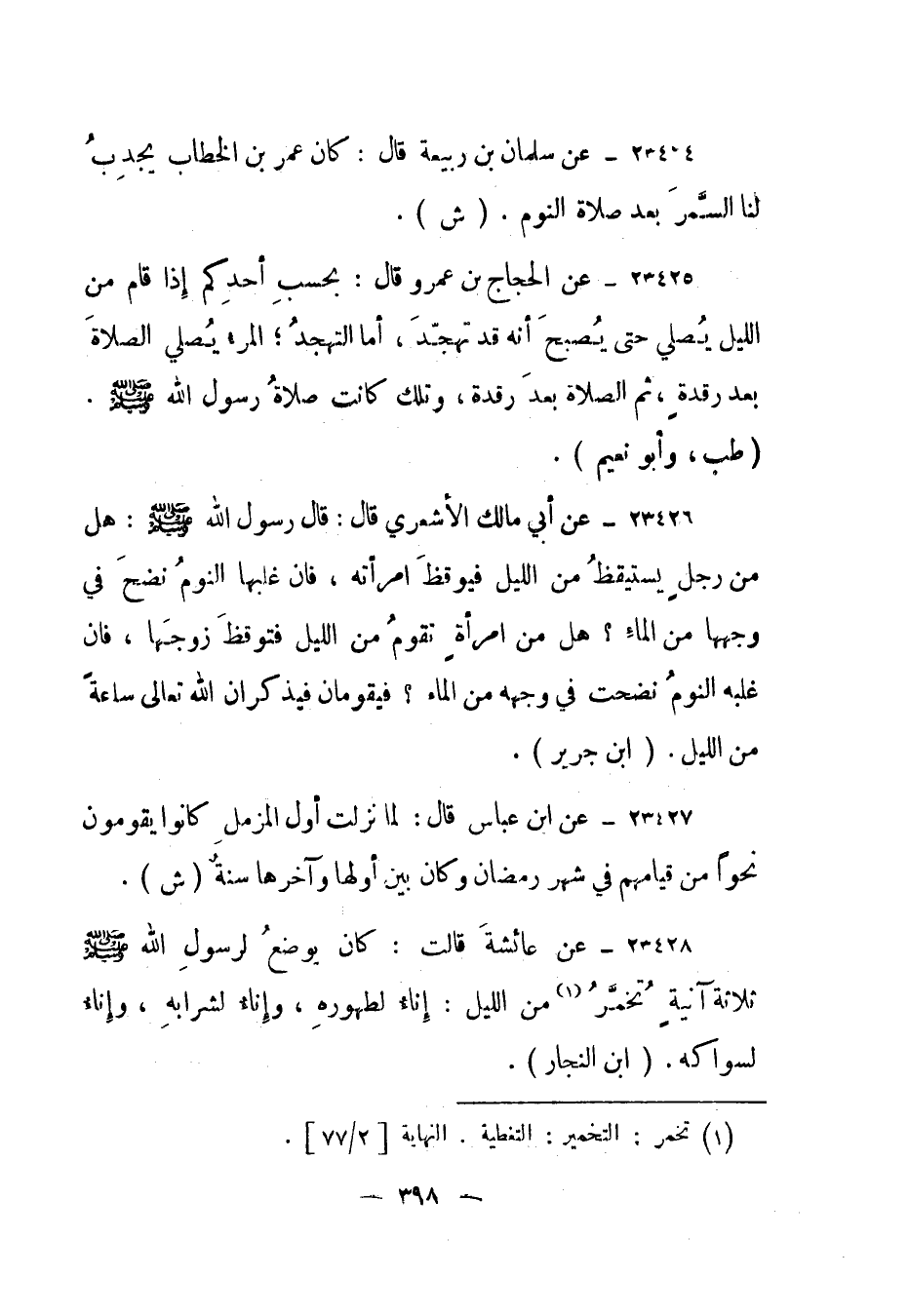 23424- عن سلمان بن ربيعة قال: "كان عمر بن الخطاب يجدب لنا السمر بعد صلاة النوم". (ش) .