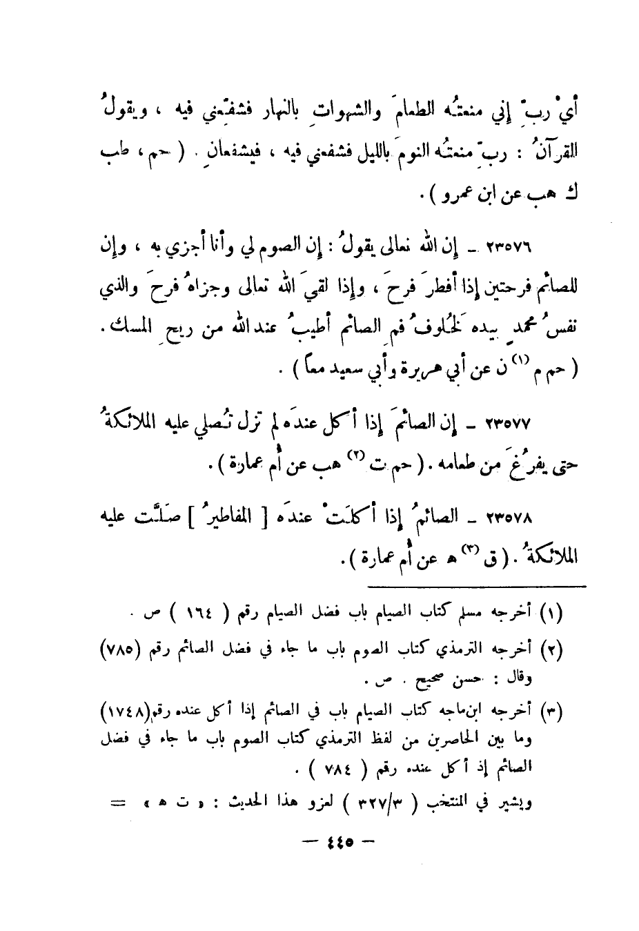 (2) أخرجه الترمذي كتاب الصوم باب ما جاء في فضل الصائم رقم (785)
