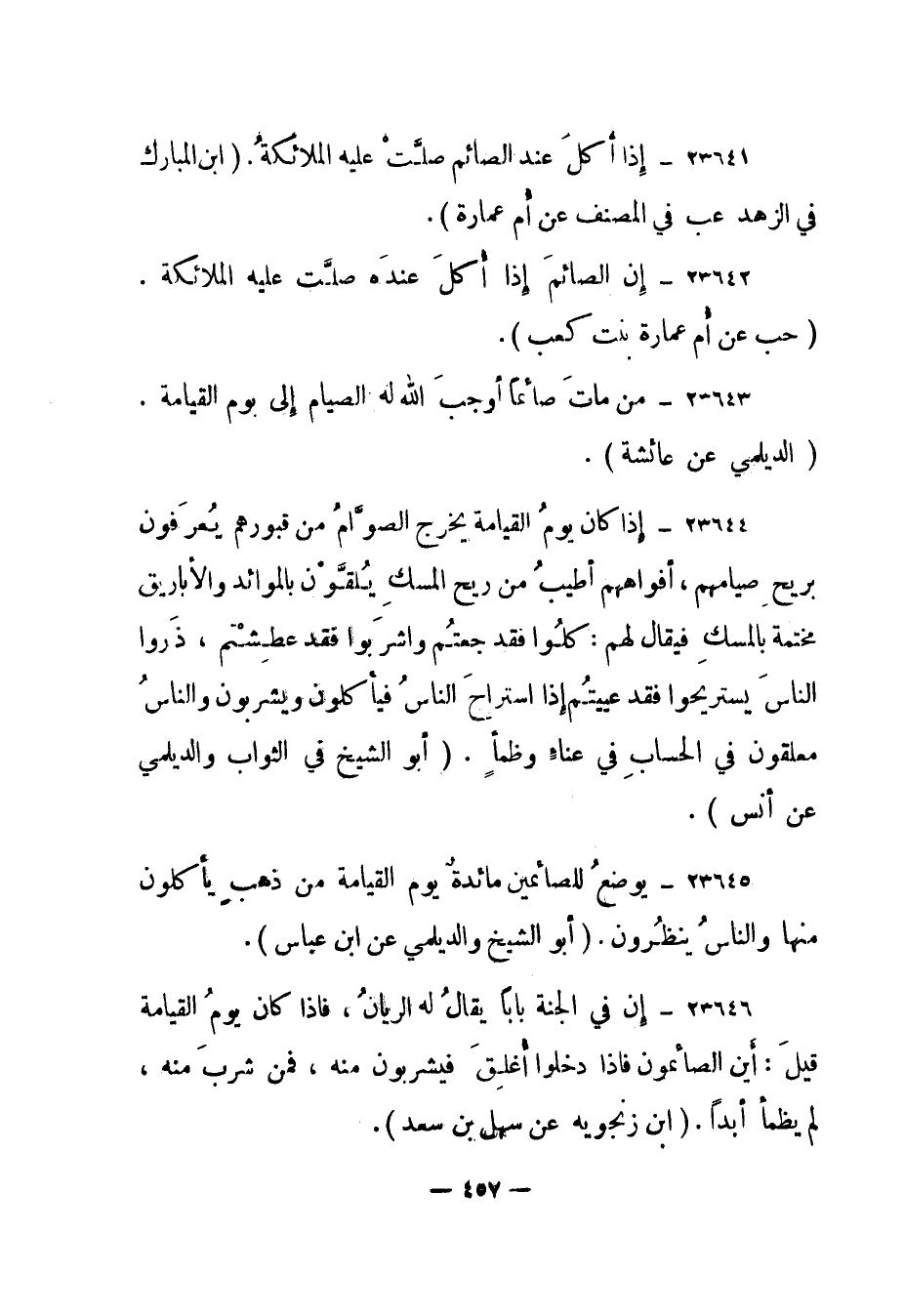 23641- إذا أكل عند الصائم صلت عليه الملائكة. (ابن المبارك في الزهد عب في المصنف عن أم عمارة) .
