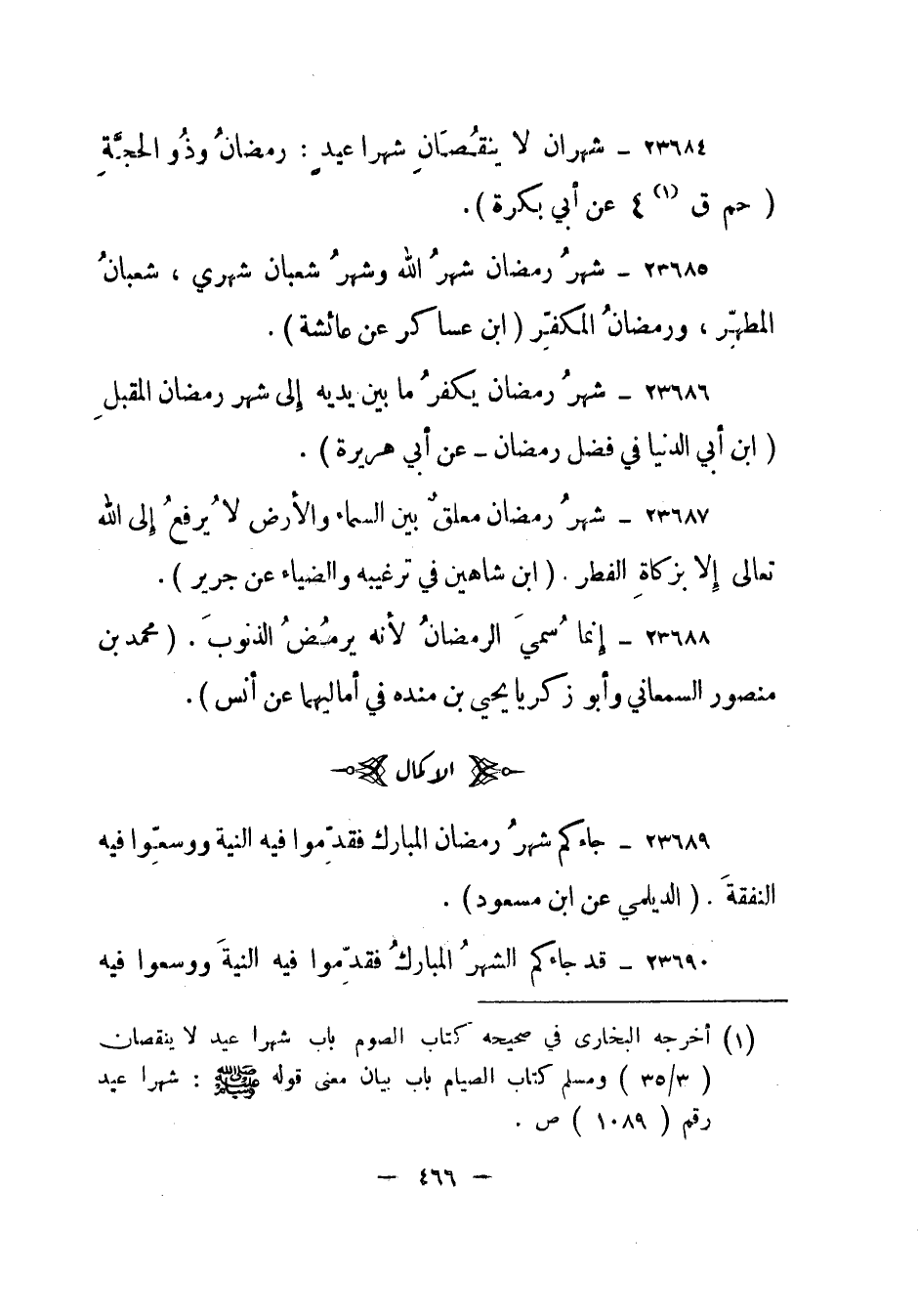 23684- شهران لا ينقصان شهرا عيد: رمضان وذو الحجة. (حم ق (1) 4 عن أبي بكرة) .