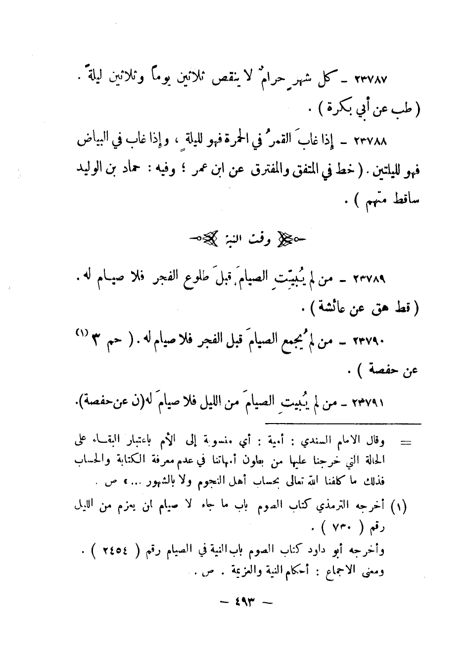 23791- من لم يبيت الصيام من الليل فلا صيام له. (ن عن حفصة) .
